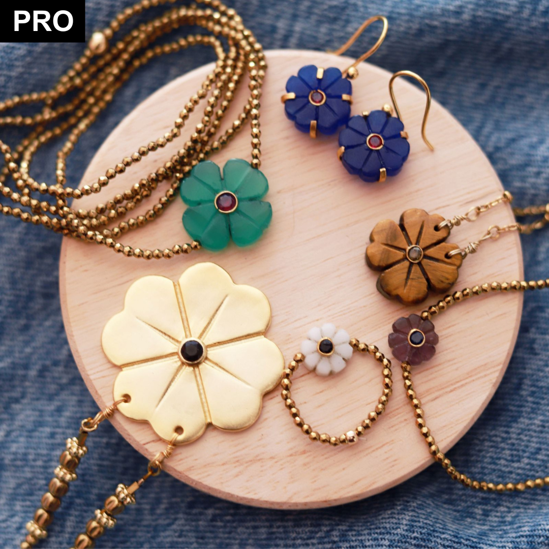 Des bijoux, pas que jolis. En pierres semi-précieuses, faits main, avec la Flower iconique.